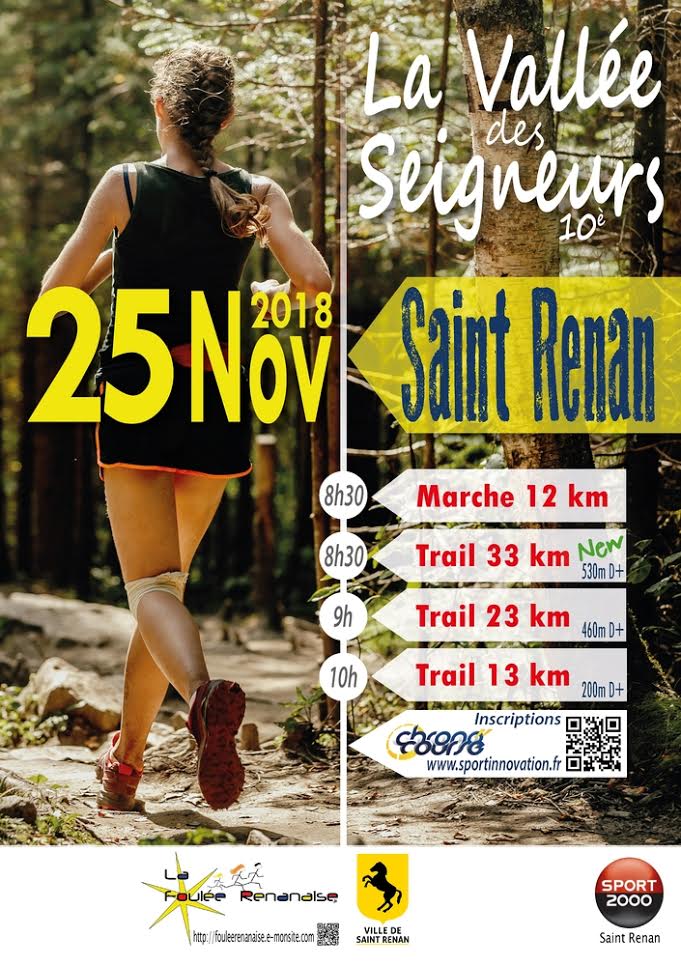 | 25 Nov 2018 | Trail de la Vallée des Seigneurs Saint-Renan (29) 33KM - Trail ARCHIVES DE CETTE COURSE Tps moyen : 03:20:41 publiée avec accord |