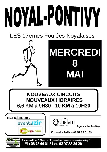 | 08 May 2019 | Foulées Noyalaises Noyal-Pontivy (56) 10KM - Route ARCHIVES DE CETTE COURSE Tps moyen : 00:52:12 publiée avec accord |