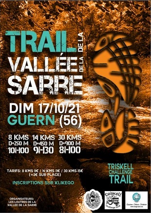 | 17 Oct 2021 | Trail de la Vallée de la Sarre Guern (56) 30KM - Trail ARCHIVES DE CETTE COURSE Tps moyen : 03:13:34 publiée avec accord |