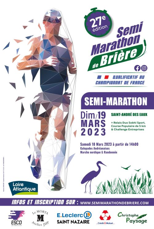 | 19 Mar 2023 | Semi-Marathon de Brière Saint-André-des-Eaux (44) 21.1KM - Route ARCHIVES DE CETTE COURSE Tps moyen : 01:49:25 publiée avec accord |