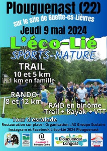 | 09 May 2024 | L'Eco-Lié Plouguenast (22) 10KM - Nature ARCHIVES DE CETTE COURSE Tps moyen : 00:59:21 publiée avec accord |